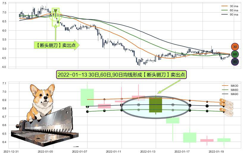 ⚀ 2022-01-13日显现 30日-60日-90日均线 【断头铡刀】卖出点 看空信号,后市看跌,卖出