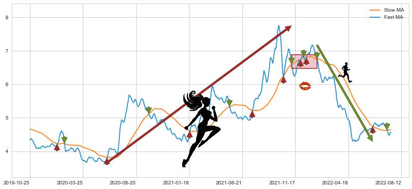 2021-11-08至2022-01-14 慢线与快线多次接触,存在上下穿越,有缠绕