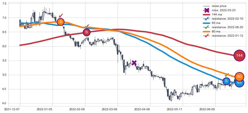 ⚂ 2022-07-13-日均线向上突破,2022-08-02-日重新下穿均线破位,均线阻力再次生效