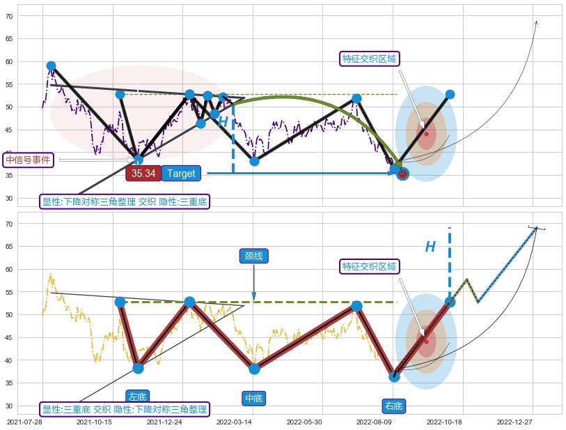 ➣ 【未确认突破,预测即将形成突破】三重底起点:2021-10-22, 预测突破点:2022-10-05,形态共237交易日
