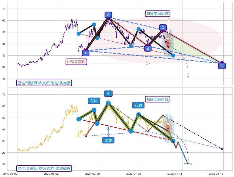 ➣ 未完成【蝴蝶】形态起点X: 2020-12-14, 已到达C点: 2022-07-04, 预测最终D点: 2023-08-09, 共661交易日