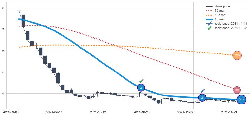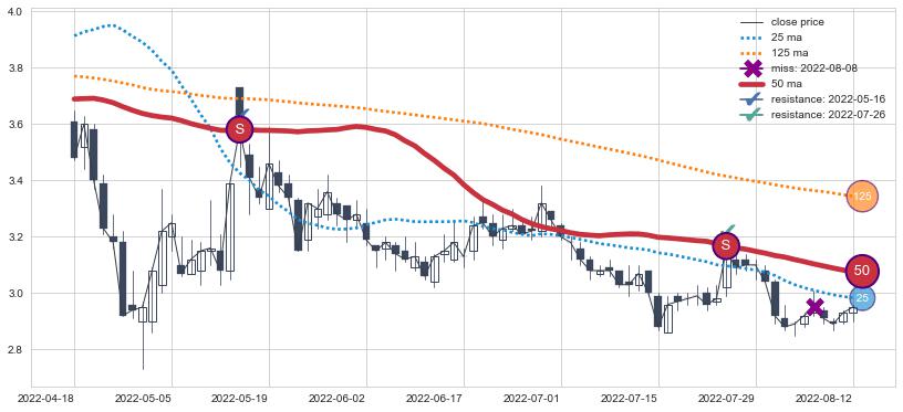⚁ MA60和MA90走势平行,且始终保持在短距离内,MA120始终在短中期均线上方,与短中期均线保持一定的距离,微微下行