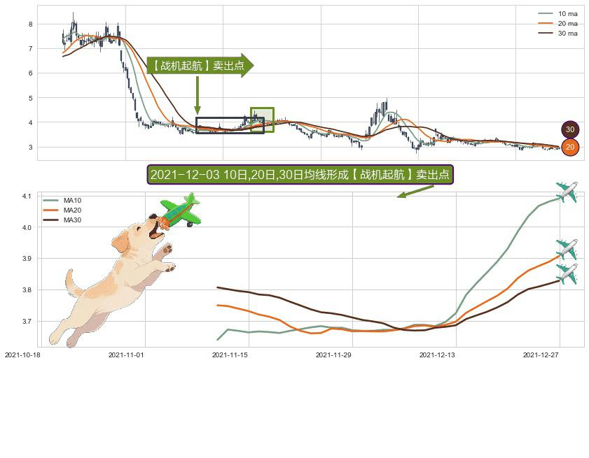 ⚀ 2021-11-10日-2021-12-27日显现 10日-20日-30日均线 【战机起航】卖出点 看空信号,后市看跌,卖出