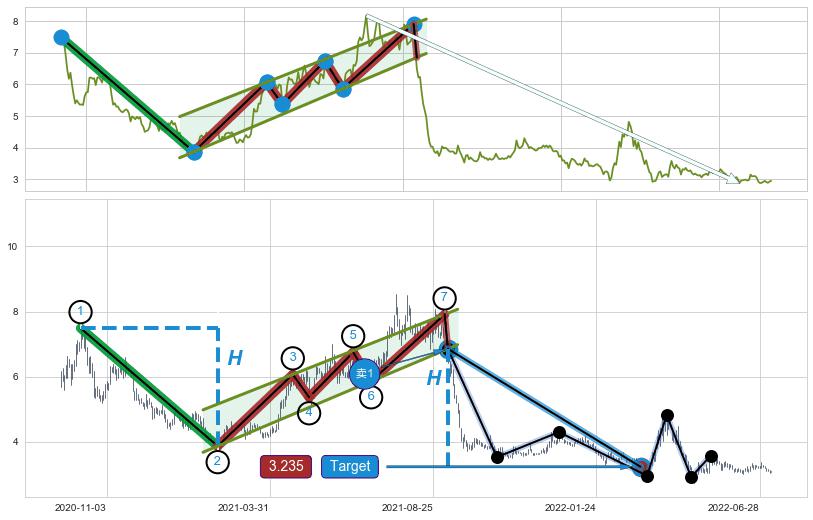 ➣ 最小中继整理跌幅→𝐇: 3.620 (𝐇旗杆的长度:旗杆起点→顶点)