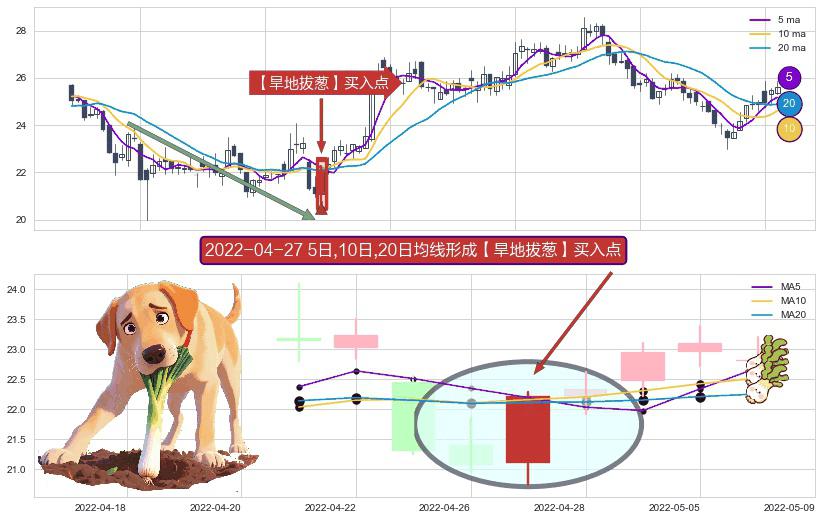 ⚀ 2022-04-27日显现 5日-10日-20日均线 【旱地拔葱】买入点 看多信号,后市看涨,买入