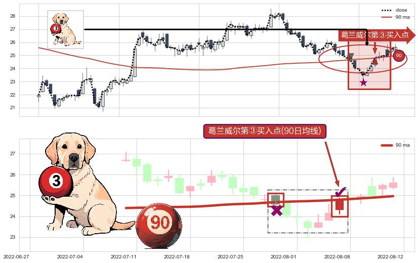 ⚀ 2022-08-05-日显现 葛兰威尔均线 90日均线 第③买入点 上升趋势的中继信号,后市看涨,买进信号