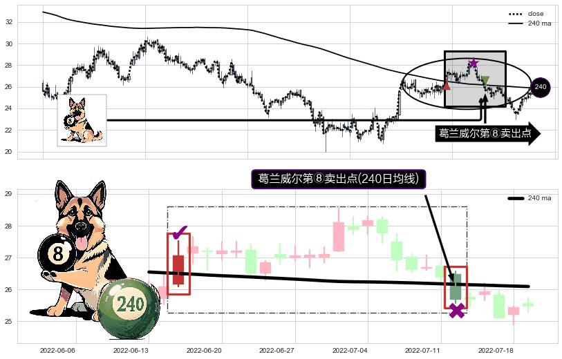 ⚀ 2022-07-12-日显现 葛兰威尔均线 240日均线 第⑧卖出点 下降趋势的中继信号,后市看跌,卖出信号