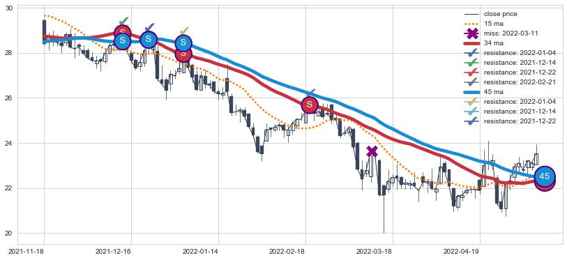 ⚂ 2022-06-15-日均线向上突破,2022-07-12-日重新下穿均线破位,均线阻力再次生效
