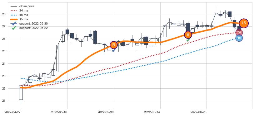⚂ 2022-07-28-日均线向下破位,2022-08-05-日重新上穿突破均线,均线支撑再次生效