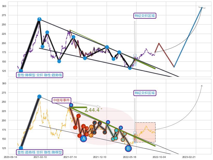 ➢ 最后的下跌趋势2021-06-10至2022-04-29:存在突破迹象,后续小反弹或者反转上涨