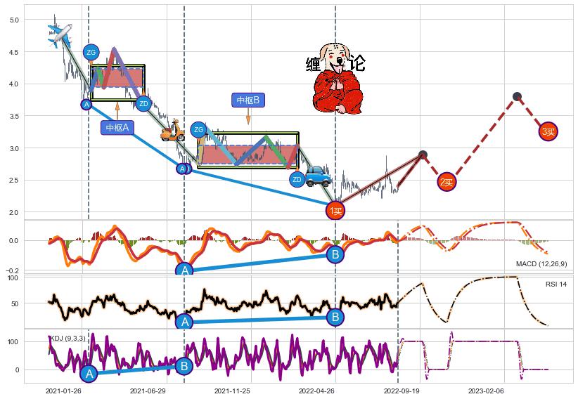 | 14 🅚:早晨之星(黎明之星) ➕ ☯️:缠论买卖点下降缠中枢AB形成后猜想拐点1买已到达,猜想后续持续拉升(均值回复) ☞ 看多信号 ⇥ 【🅚线】交织【图形】⇥ 综合量化分数: 57 | > |