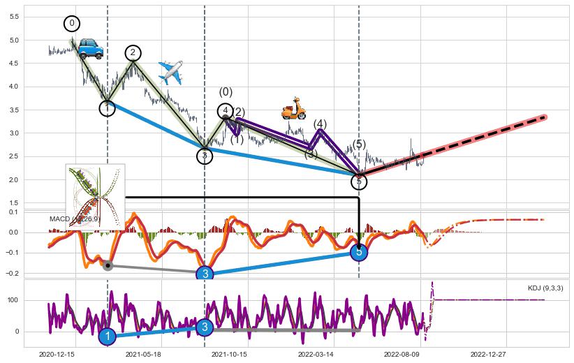 | 6 🅚:塔形底 | 圆底 ➕ 🌊:波浪理论猜想下跌浪5已形成,猜想后续形成abc反弹上涨(均值回复) ☞ 看多信号 ⇥ 【🅚线】交织【图形】⇥ 综合量化分数: 51 | > |