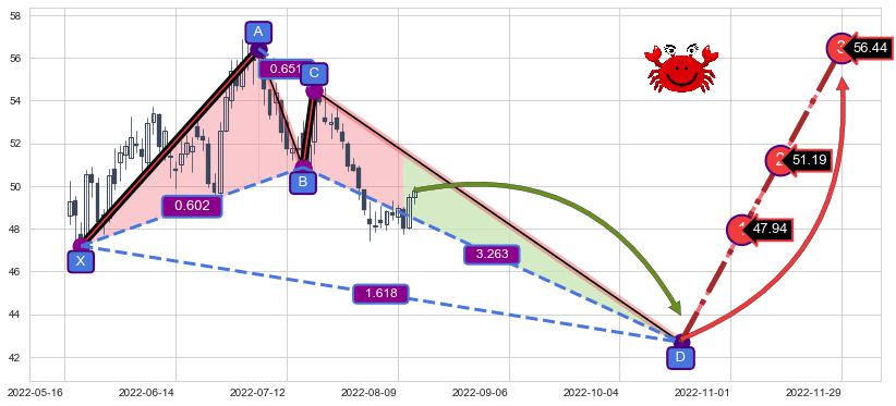 ➣ 未完成【螃蟹】形态起点X: 2022-05-19, 已到达C点: 2022-07-19, 预测最终D点: 2022-10-19, 共107交易日