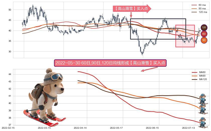 ⚀ 2022-04-07日-2022-07-18日显现 60日-90日-120日均线 【高山滑雪】买入点 看多信号,后市看涨,买入