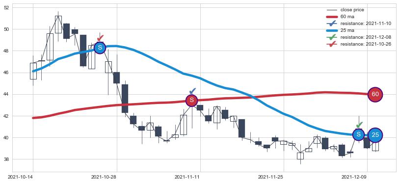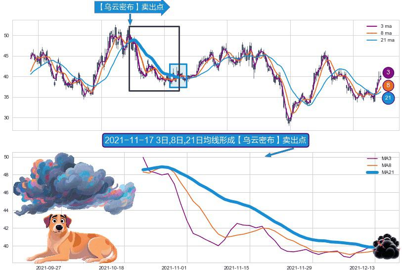 ⚀ 2021-10-21日-2021-12-14日显现 3日-8日-21日均线 【乌云密布】卖出点 看空信号,后市看跌,卖出