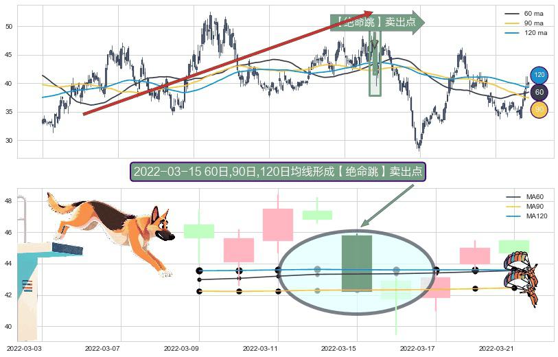 ⚀ 2022-03-15日显现 60日-90日-120日均线 【绝命跳】卖出点 看空信号,后市看跌,卖出