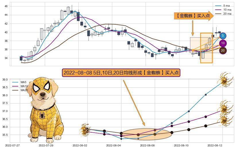 ⚀ 2022-08-08日显现 5日-10日-20日均线 【金蜘蛛】买入点 看多信号,后市看涨,买入