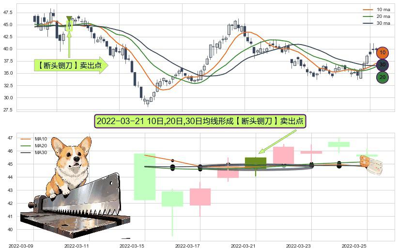 ⚀ 2022-03-21日显现 10日-20日-30日均线 【断头铡刀】卖出点 看空信号,后市看跌,卖出