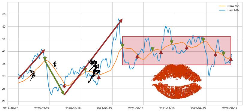 2021-03-10至2022-08-10 慢线与快线多次接触,存在上下穿越,有缠绕
