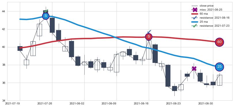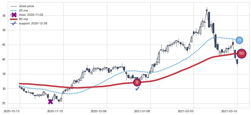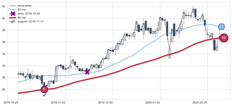 ⚁ MA3和MA8走势平行,且始终保持在短距离内,MA21始终在短中期均线上方,与短中期均线保持一定的距离,微微下行