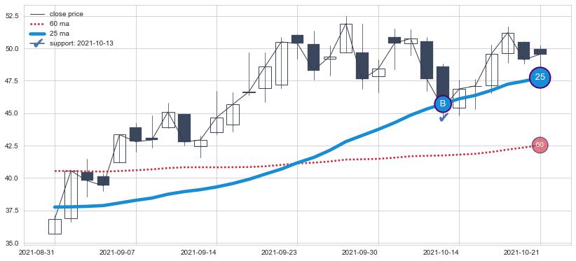 ⚀ 中期均线MA8上穿长期均线MA21形成的交叉是标准 黄金交叉