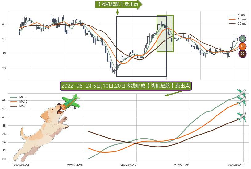⚀ 2022-04-29日-2022-06-14日显现 5日-10日-20日均线 【战机起航】卖出点 看空信号,后市看跌,卖出