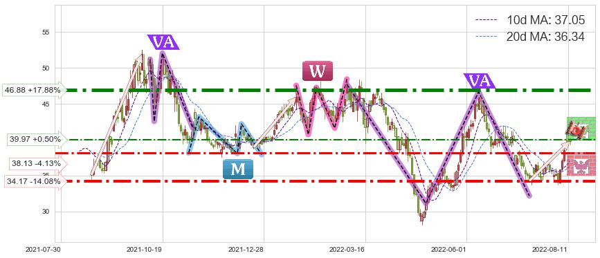 ♘ 阻力价格位39.97,可信任强度49.33%,距离最后交易2022-08-12形成的收盘价格39.77相差 +0.50%