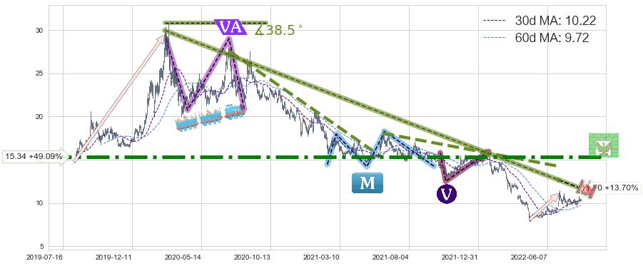 ♘ 阻力价格位15.34,可信任强度92.09%,距离最后交易2022-08-12形成的收盘价格10.29相差 +49.09%
