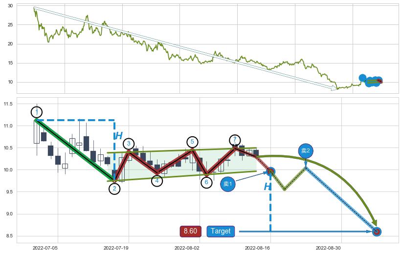 ➣ 【未确认突破,预测即将形成突破】升⚑旗形起点:2022-06-30, 预测突破点:2022-08-16,形态共34交易日