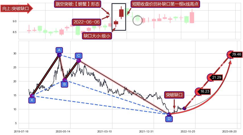 ➣ 已完成【螃蟹】形态起点X: 2019-08-07, 终点D: 2022-04-26, 共659交易日