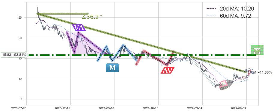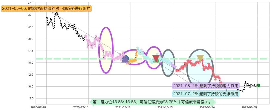♘ 阻力价格位15.83,可信任强度93.75%,距离最后交易2022-08-12形成的收盘价格10.29相差 +53.81%
