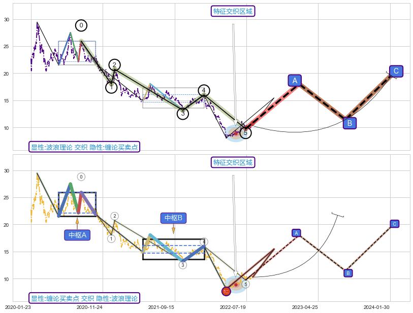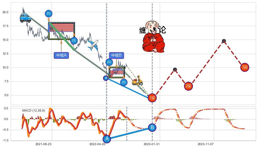 ➣ 【未完成】缠论 起点:2021-01-20, 完成第1中枢A,完成第2中枢B,到达2022-08-12