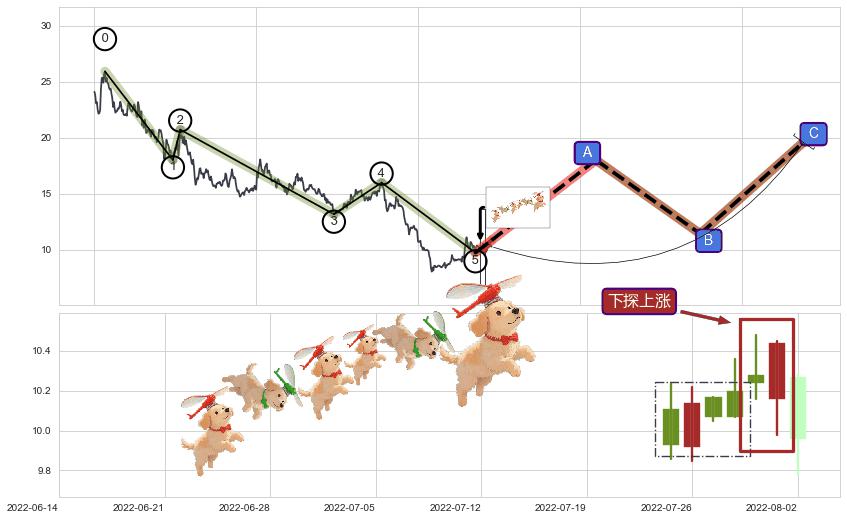 | 7 🅚:上涨两颗星 | 上涨三颗星 ➕ 🌊:波浪理论猜想下跌浪5已形成,猜想后续形成abc反弹上涨(均值回复) ☞ 看多信号 ⇥ 【🅚线】交织【图形】⇥ 综合量化分数: 59 | > |