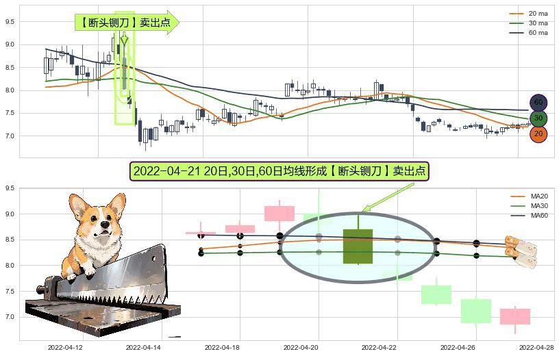 形态多维评估: ⚀ 2022-04-21日显现 20日-30日-60日均线 【断头铡刀】卖出点 看空信号,后市看跌,卖出