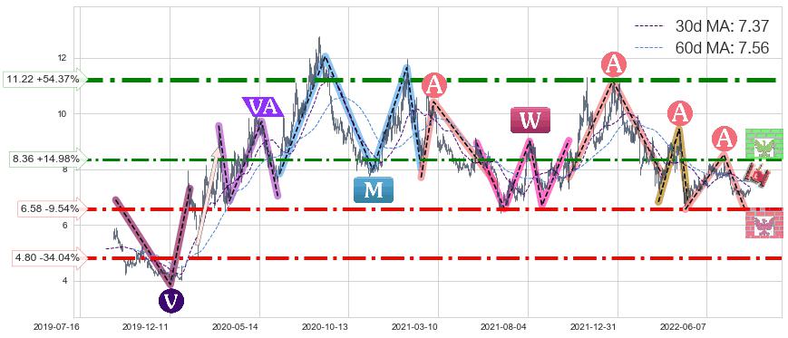 ♞ 30日均线:7.37,60日均线:7.56→ 快线<慢线