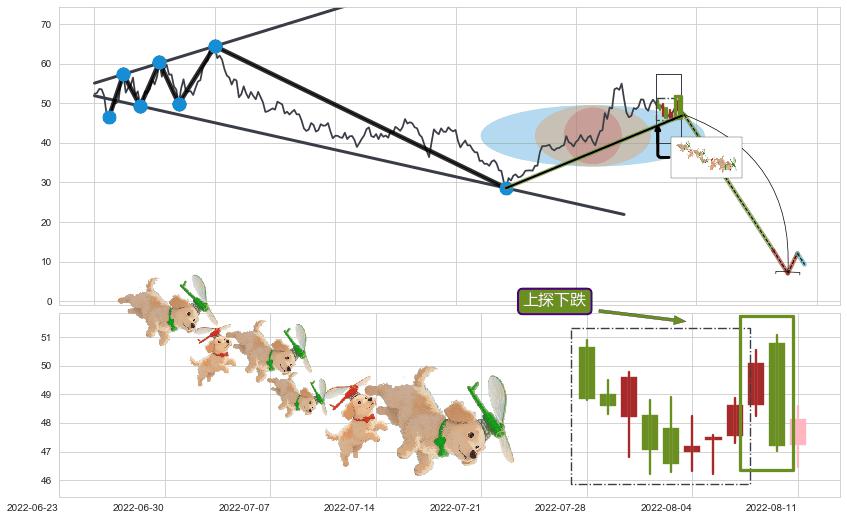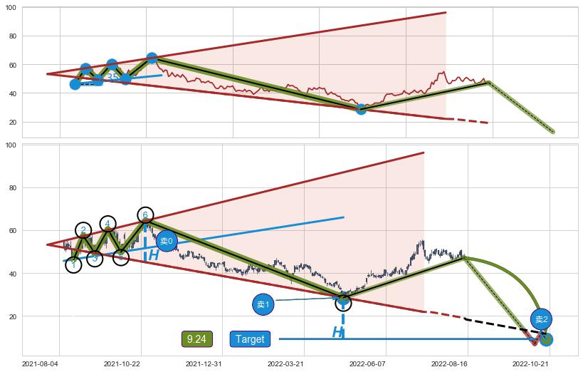 ➣ 【仅预测突破】最后价格:47.10与预测突破价格:28.58→【空间临近】后续最小【反转】第一目标价格→(2022-10-21: 9.24 )