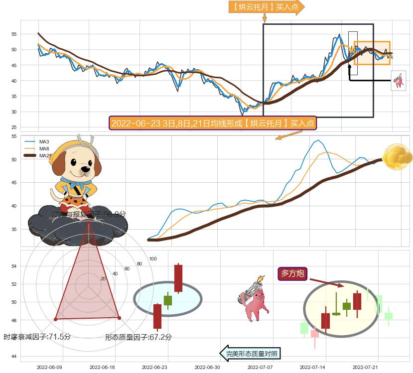 | 3 🅚:看涨(低位)倒锤头线 ➕ 🎢:【烘云托月】买入点均线组合买入点信号形成后,猜想后续上升持续,上涨加速(趋势跟踪) ☞ 看多信号 ⇥ 【均线】交织【🅚线】⇥ 综合量化分数: 51 | > |