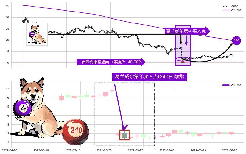 ⚀ 2022-05-24-日显现 葛兰威尔均线 240日均线 第④买入点 下降趋势均值回复的短线反弹信号,后市看涨,买进信号