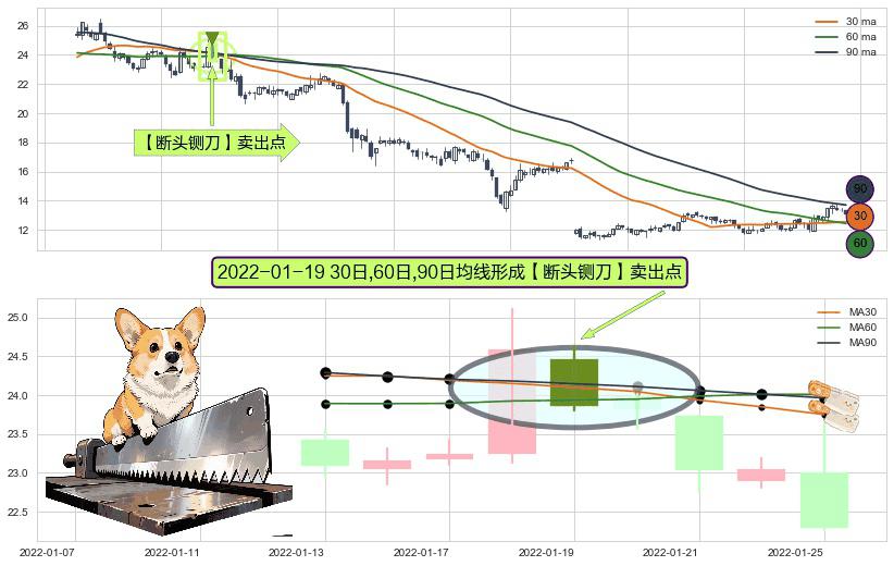 ⚀ 2022-01-19日显现 30日-60日-90日均线 【断头铡刀】卖出点 看空信号,后市看跌,卖出