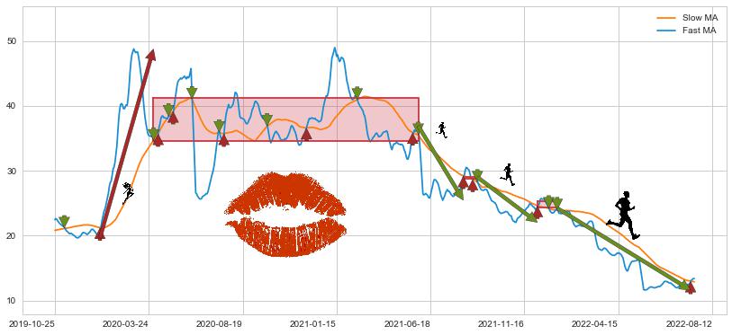 2022-01-05至2022-08-08 慢线与快线呈空头排列, 慢线与快线接触少,无缠绕