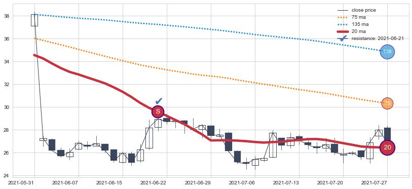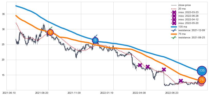 ⚂ 2021-12-06-日均线向上突破,2022-01-19-日重新下穿均线破位,均线阻力再次生效