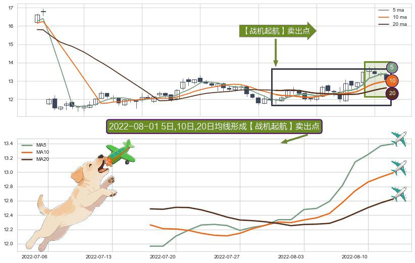 ⚀ 2022-07-18日-2022-08-12日显现 5日-10日-20日均线 【战机起航】卖出点 看空信号,后市看跌,卖出