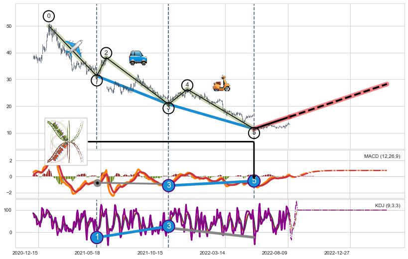 | 5 🅚:【高山滑雪】买入点 ➕ 🌊:波浪理论猜想下跌浪5已形成,猜想后续形成abc反弹上涨(均值回复) ☞ 看多信号 ⇥ 【均线】交织【图形】⇥ 综合量化分数: 69 | > |