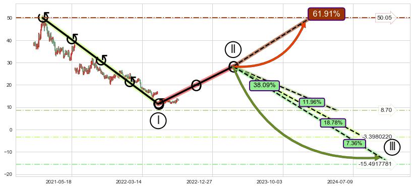 ➢ 高概率大级别循环下跌浪被破坏,反转向上(突破5浪起点)概率61.91%