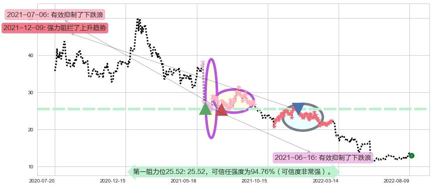 ♘ 阻力价格位25.52,可信任强度94.76%,距离最后交易2022-08-12形成的收盘价格13.07相差 +95.24%