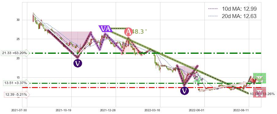♘ 阻力价格位13.51,可信任强度62.94%,距离最后交易2022-08-12形成的收盘价格13.07相差 +3.37%