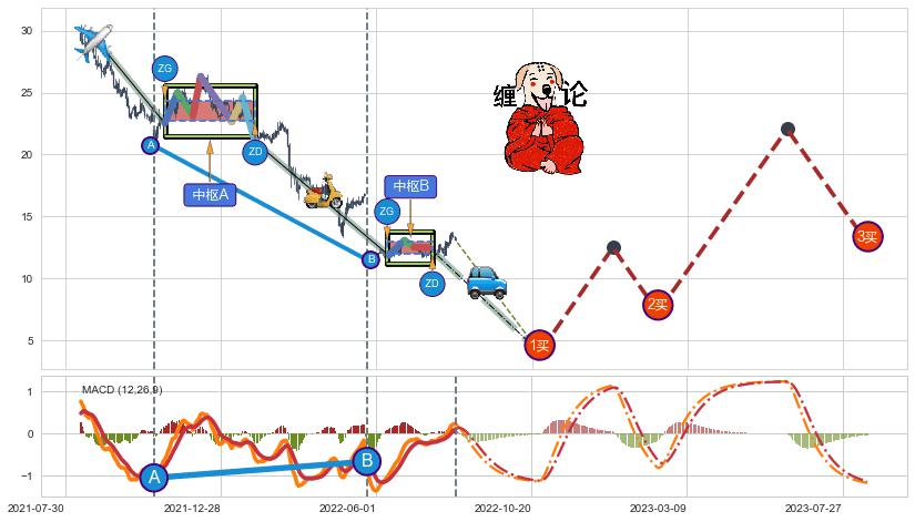 ➣ 【未完成】缠论 起点:2021-08-23, 完成第1中枢A,完成第2中枢B,到达2022-08-12
