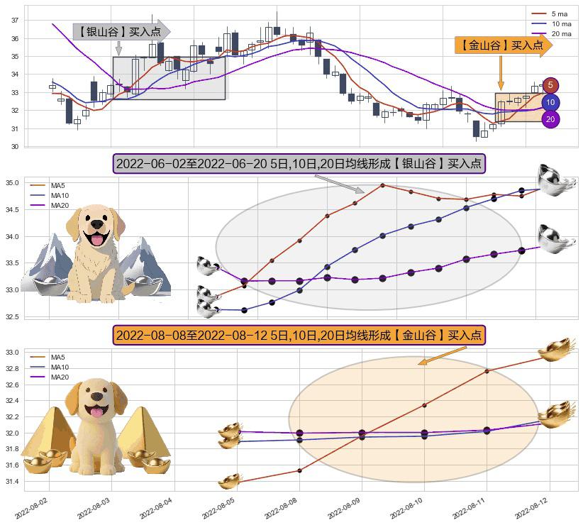 ⚄ 2022-08-09-日至2022-08-12-日显现 5日-10日-20日均线 【金山谷】买入点 其再次确认了买入信号,可靠性更强,买入