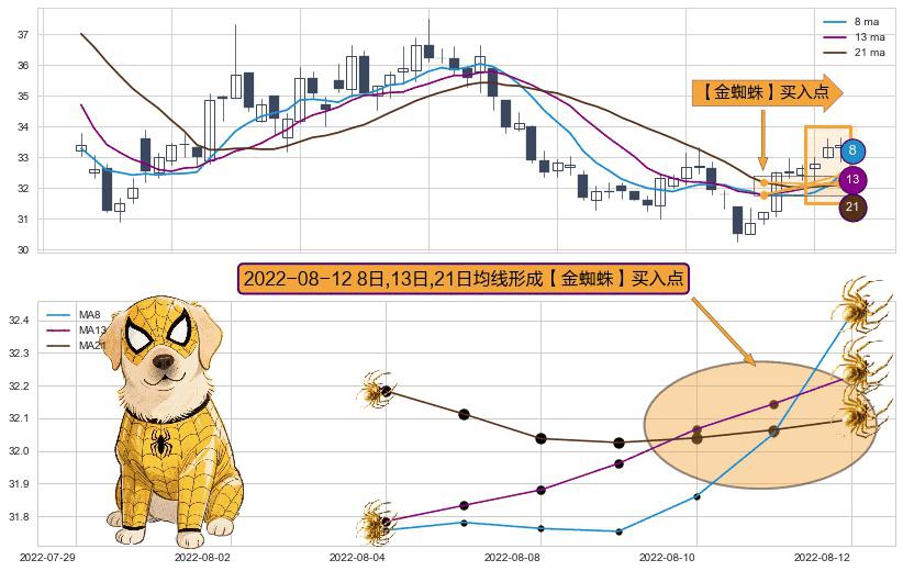 ⚀ 2022-08-12日显现 8日-13日-21日均线 【金蜘蛛】买入点 看多信号,后市看涨,买入