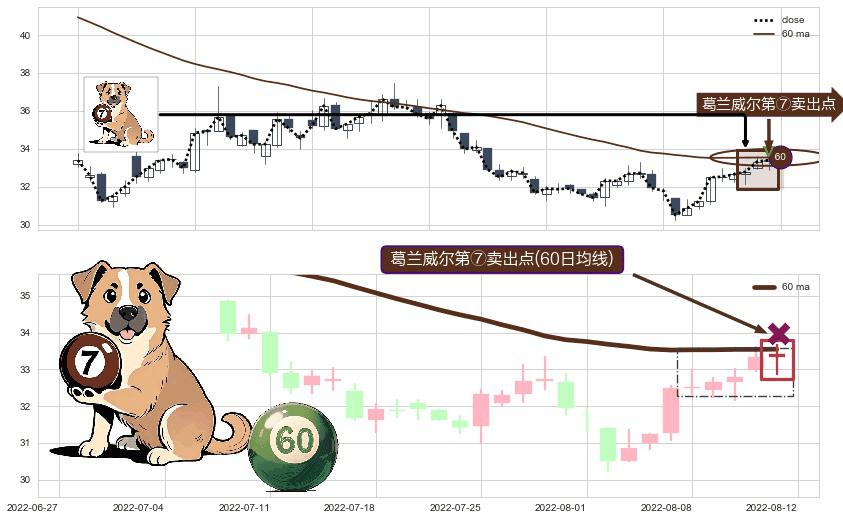 ⚀ 2022-08-12-日显现 葛兰威尔均线 60日均线 第⑦卖出点 下降趋势的中继信号,后市看跌,卖出信号
